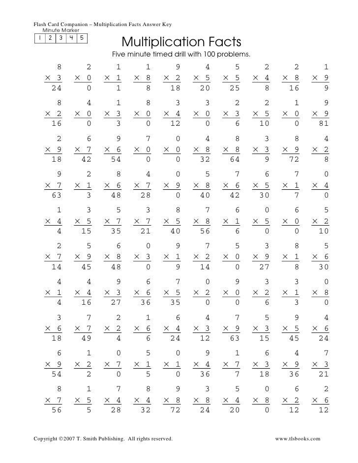 Multiplication Fluency Drill Math Facts